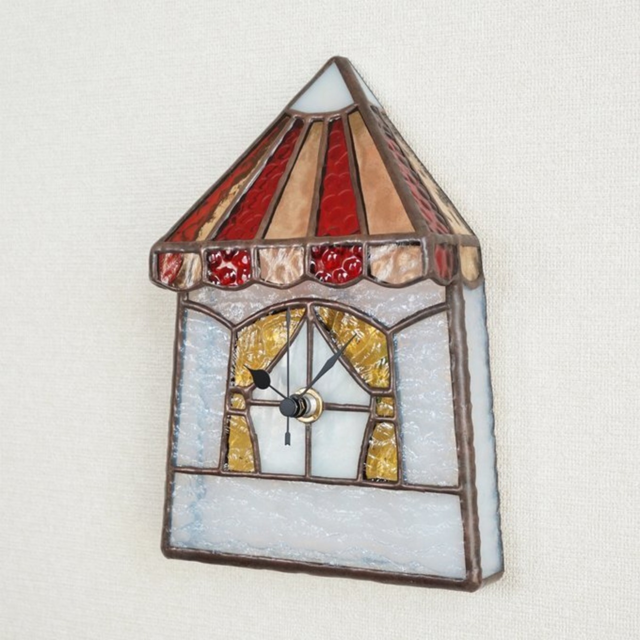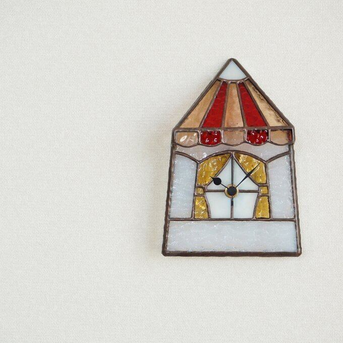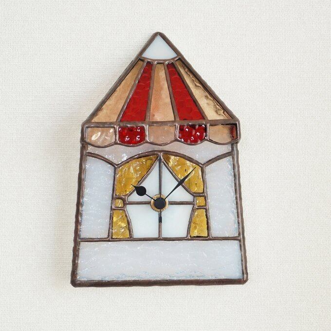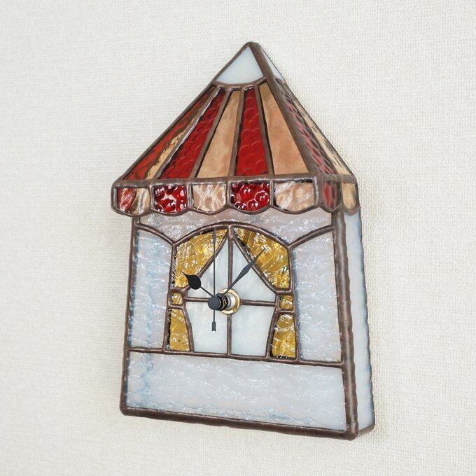 お家をモチーフにしたステンドグラスの時計です。