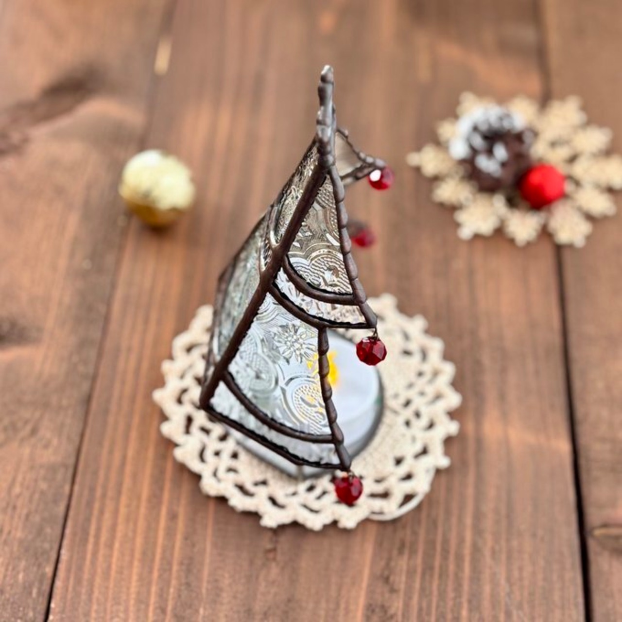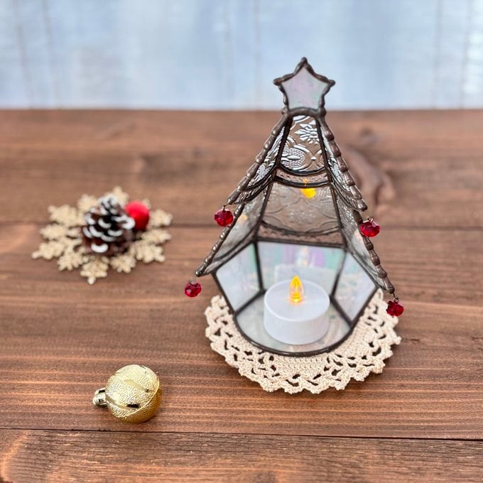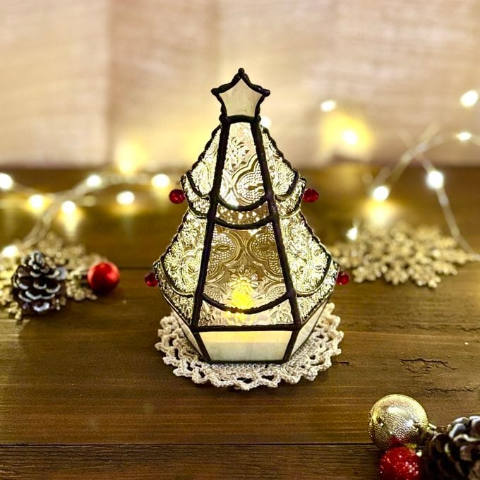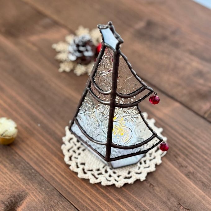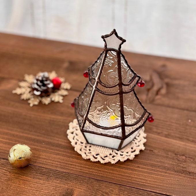 ステンドグラスで制作したミニツリーのLEDキャンドルライトホルダーなります。